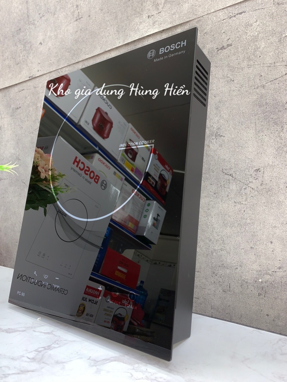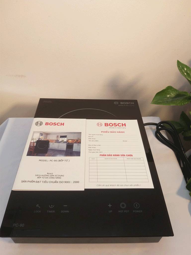 Bếp từ đơn Bosch PC-90 có thiết kế vô cùng cao cấp, sản phẩm được sản suất với kiểu dáng hình hộp chữ nhật, mặt trên làm bằng kính trống xước cao cấp, mặt dưới làm bằng nhựa cứng vô cùng chắc chắn.