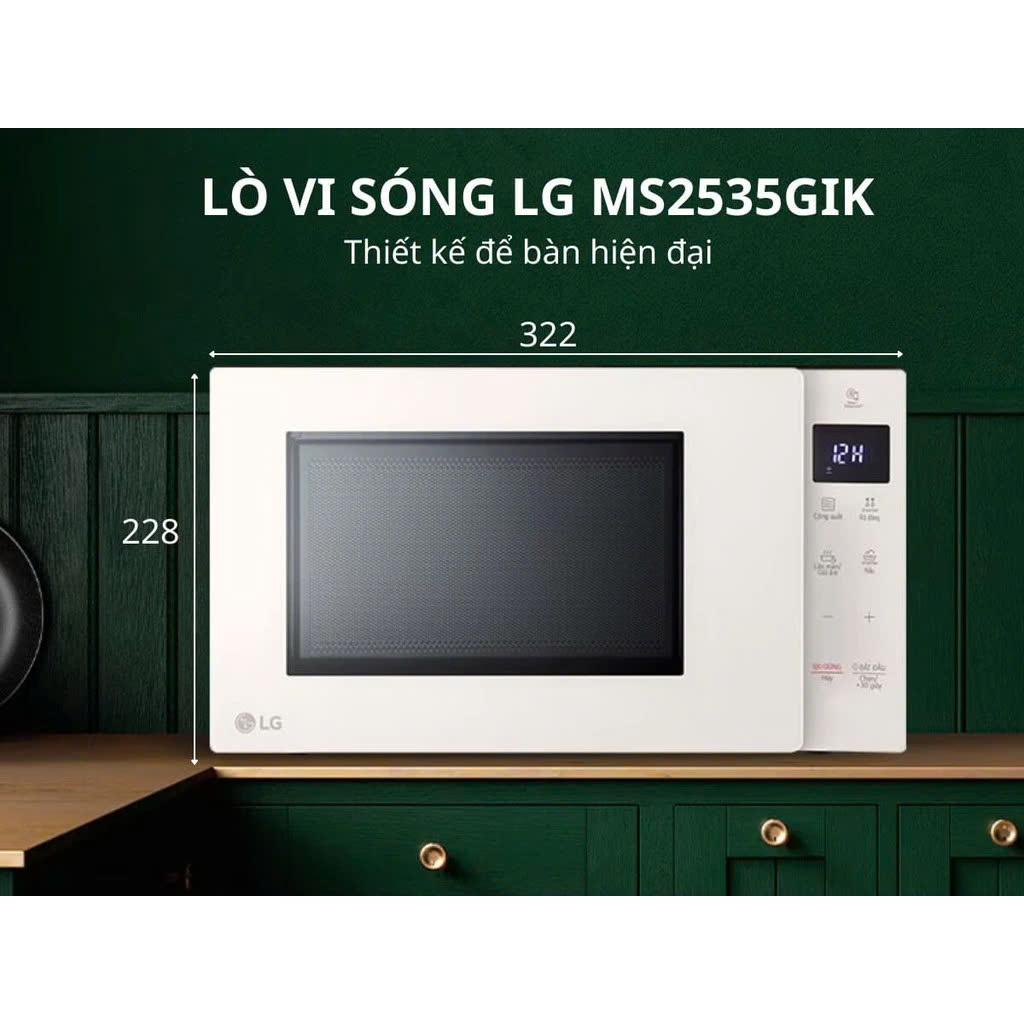 ✅Lò vi sóng NeoChef™ Inverter LG MS2535GIK 25 Lít sở hữu thiết kế sang trọng, gam màu trắng tinh tế tạo điểm nhấn nổi bật cho mọi không gian bếp gia đình. Sản phẩm có kích thước 47.6cm x 27.2cm (Rộng x Cao), dễ dàng đặt ở nhiều vị trí mà không quá chiếm diện tích. Bên cạnh đó, thiết bị còn đi kèm với đĩa xoay hỗ trợ quá trình nấu nướng thêm thuận tiện hơn.