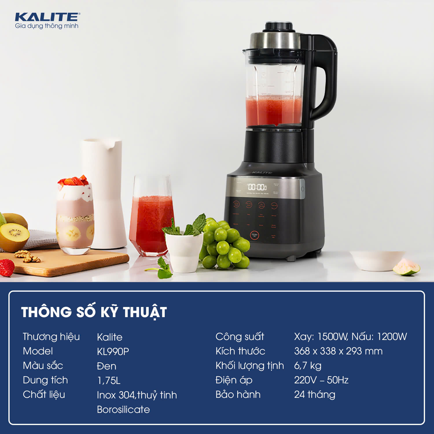 MÁY LÀM SỮA HẠT KALITE KL990P - Dug tích 1,75 lít - Công suất 2700W - Hàng chính hãng bảo hành 24 tháng