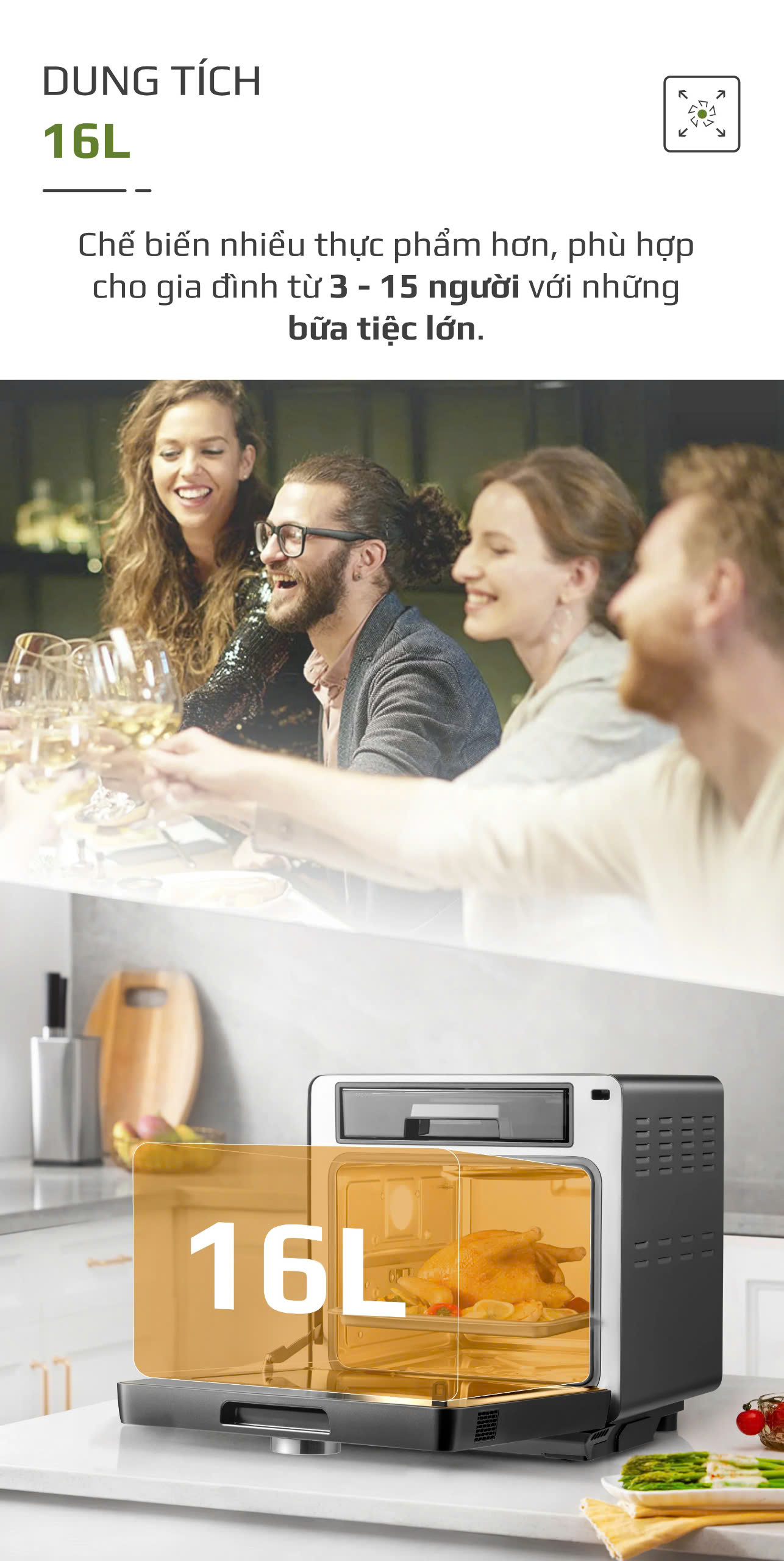 Nồi Chiên Hơi Nước OLIVO SF16 Pro - Dung tích 16 lít - Công Suất 2800W - Hàng chính hãng bảo hành 24 tháng