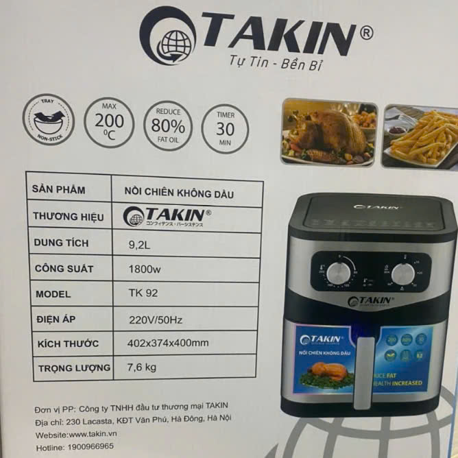 Nồi chiên không dầu Takin TK92 - Dung tích 9.2 lít - Công suất 1800W - Hàng chính hãng bảo hành 12 tháng