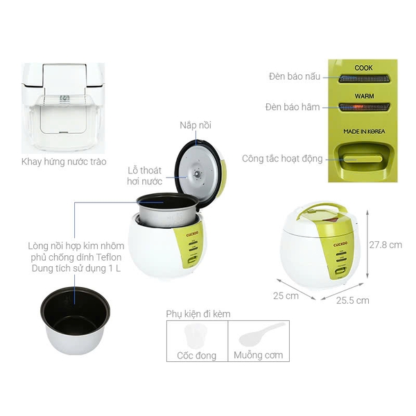 Nồi cơm điện Cuckoo CR-0661 - Dung tích 1 lít - Công suất 500W - Hàng chính hãng bảo hành 12 tháng